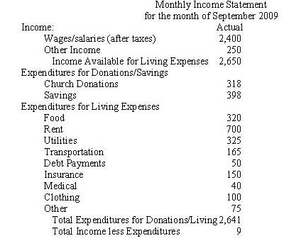 A personal income statement is like a financial motion picture of your cash inflows and outflows. This type of statement is based entirely on actual cash flows, not accruals. An example of an income statement is found in Chart 6: Income Statement Example. If the statement looks familiar, it is because the income statement is just the middle column of your budget.