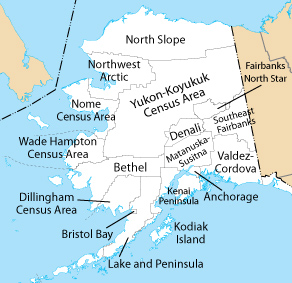 Maps which show government boundaries, such as countries, states, or counties are referred to as political maps. Though political boundaries sometimes follow natural boundaries, like rivers or mountain ranges, most political boundaries are invisible lines that have been created by government organizations. The political map below includes both natural and artificial boundaries which, when combined, create the state boundaries of Alaska. Areas may include many different types of political boundaries. For instance, the United States is divided into states, the states are divided into counties, and counties have political divisions such as cities and towns. Each of these boundaries are political boundaries. Voting or congressional districts, as well as school districts, are also examples of political boundaries.