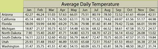 both states. Note how the average daily temperature is nearly the