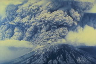 Stratovolcanoes are steep and conical with explosive eruptions. Sudden, violent blasts can send particles as far as twenty miles high and many miles away from the volcano. The erupted material can range in size from tiny particles of ash to boulders the size of houses. Commonly there is little, if any, lava extruded. Such eruptions can be very dangerous and even deadly. Because they erupt infrequently, unpredictably, and violently, and because they occur in populated areas, these explosive volcanoes pose the greatest danger to humans. The eruption at Mount St. Helens in the state of Washington in 1980 caused a giant landslide. Once the side of the mountain was gone, the volcanic gases exploded out of the side of the volcano, producing a lateral blast. This blast, traveling at speeds of up to 670 miles per hour, quickly overtook the landslide and extended up to nineteen miles from the volcano. In the areas closest to the volcano and up to about eight miles away, the blast destroyed everything—trees, houses, wildlife, etc. This area was left barren as the moon. Most of the fifty-seven people killed in the eruption, including volcanologist David Johnston, were killed by asphyxiation from the lateral blast. The hot gases scorched their lungs.