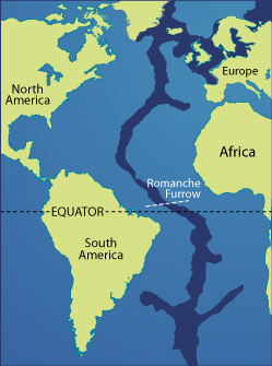 the equator at the Romanche furrow where the crest of the ridge dips